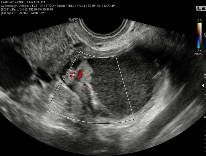 Nestas situações a ultrassonografia transvaginal com preparo intestinal, por ter ter maior resolução espacial, será o exame de escolha.